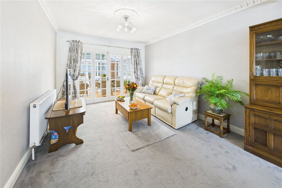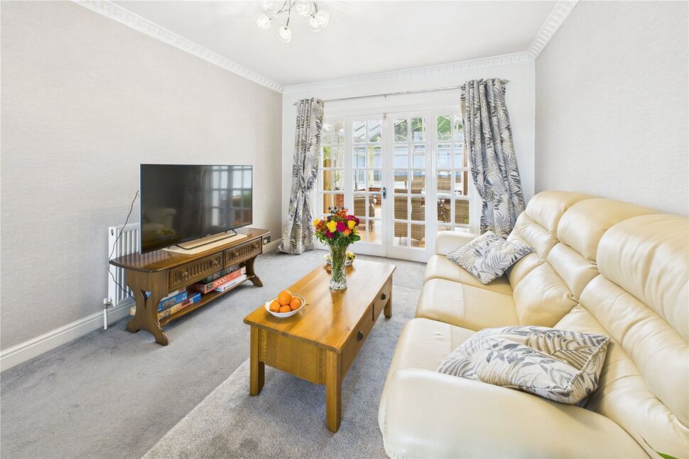 UPVC double glazed window, living flame gas fire, coved ceiling, two double radiators, two windows and French doors to conservatory.