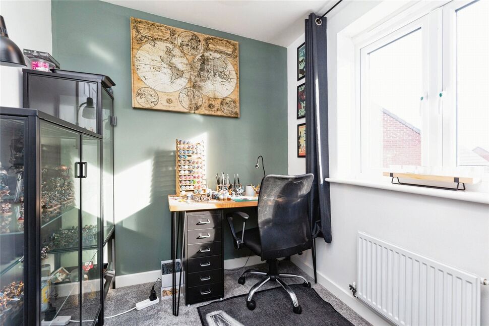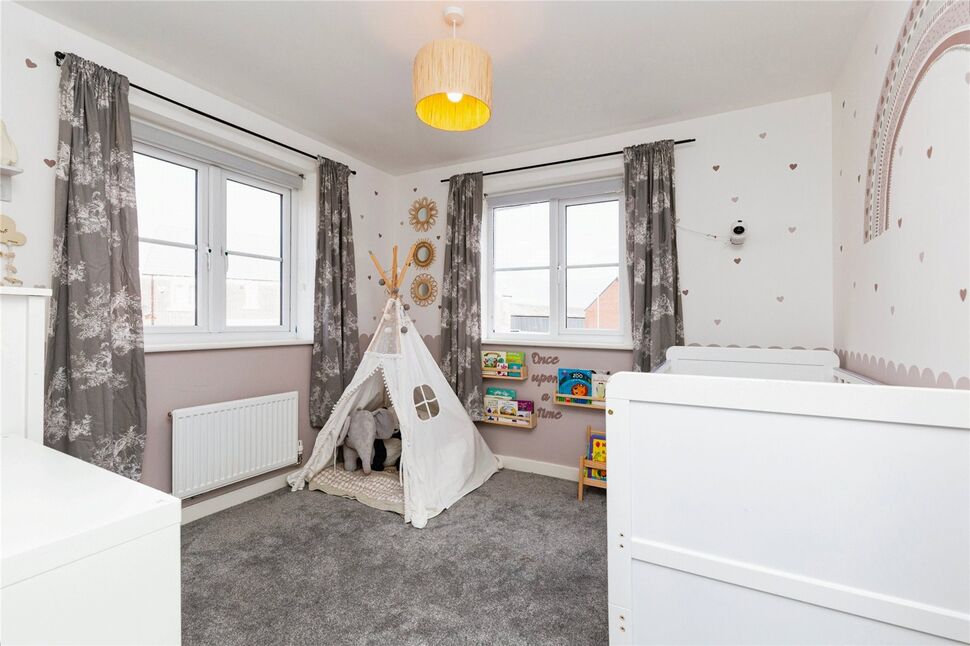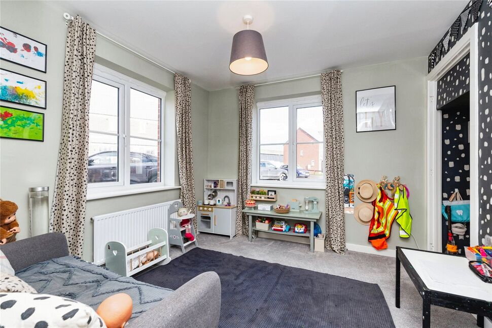 The accommodation comprises a spacious front facing living room which is tastefully presented with a playroom offer the scope for flexibility which could be a home office/games rooms. To the rear, the hub of the home is the dining kitchen, with a range of shaker style storage units offering space for a range of free standing appliances. a utility room with external access and W.C then complete the accommodation.