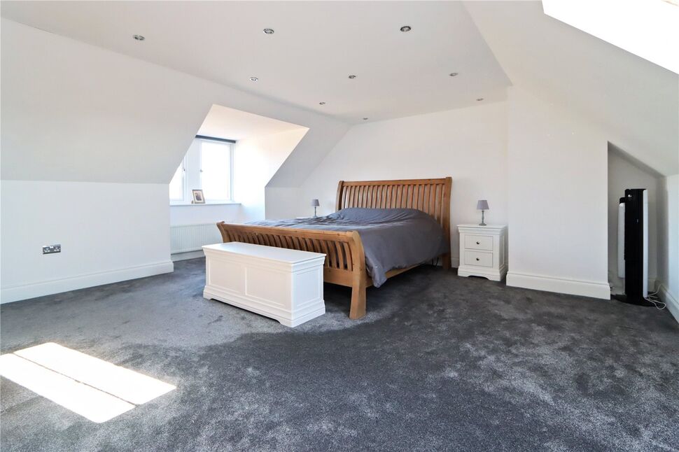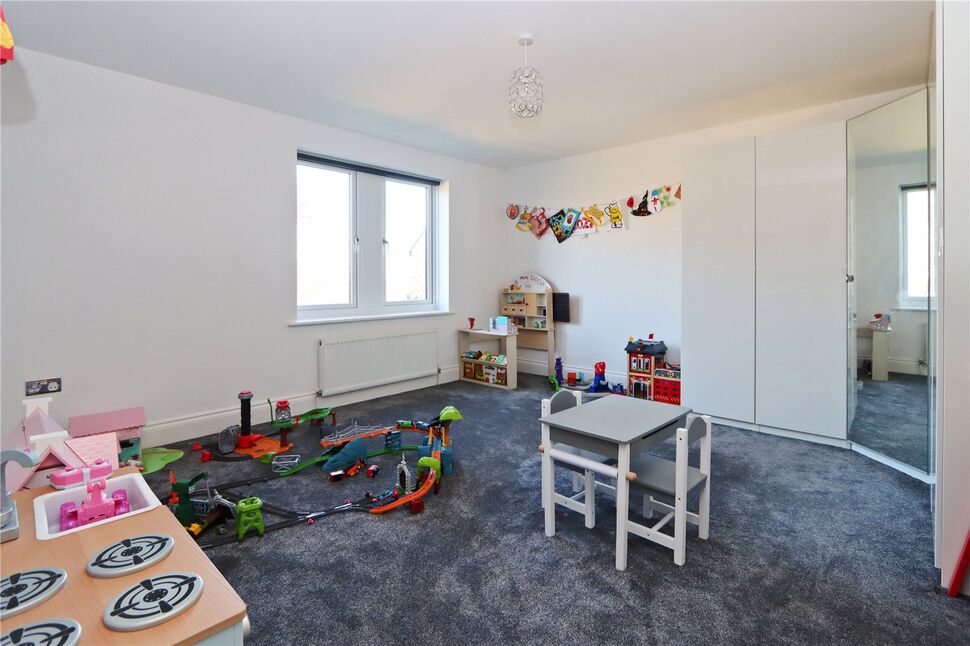 Stairs lead to the first floor, where you'll find four spacious double bedrooms. The largest bedroom features an en-suite wet room, and three of the bedrooms benefit from built-in wardrobes. A stylish four-piece family bathroom serves the remaining bedrooms.