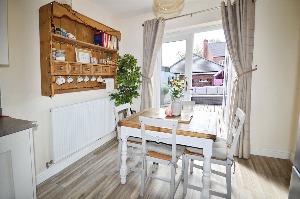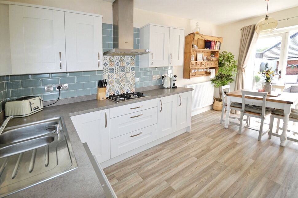 Modern and well fitted kitchen with an integrated gas hob and electric oven and ample dining space. French doors lead out to the rear patio and garden.