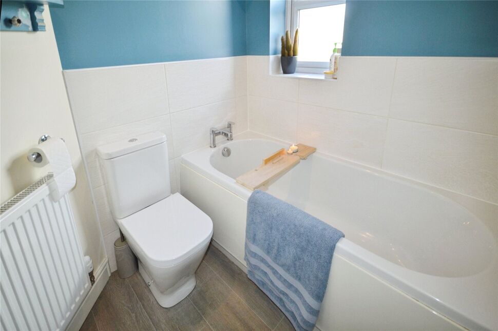 The bathroom is appointed with a panelled bath, pedestal sink and a low flush wc.