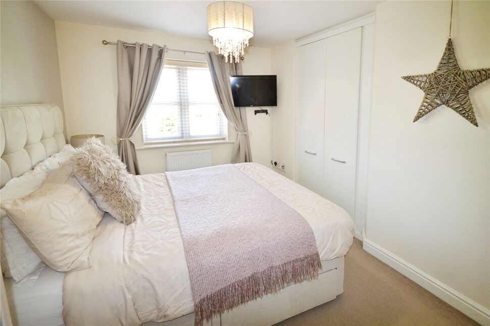 The property includes three double bedrooms, each offering ample space for comfort. The first bedroom is a standout, hosting a private en-suite and built-in wardrobes for added convenience.