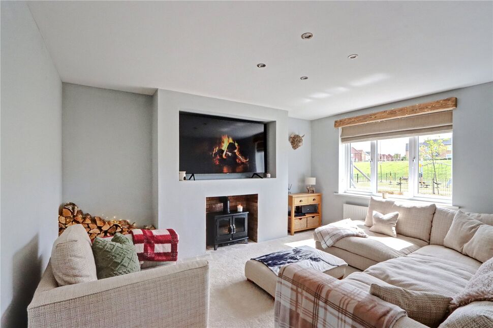 The gardens to the front are open plan and enclosed to the rear with ample parking on the driveway and in front. There are fine views at the front overplaying fields and beyond.