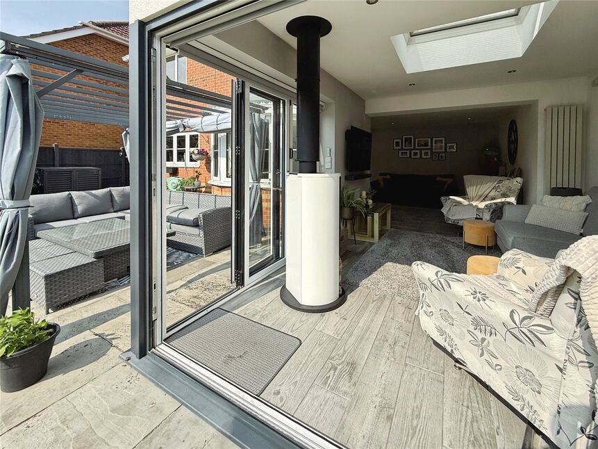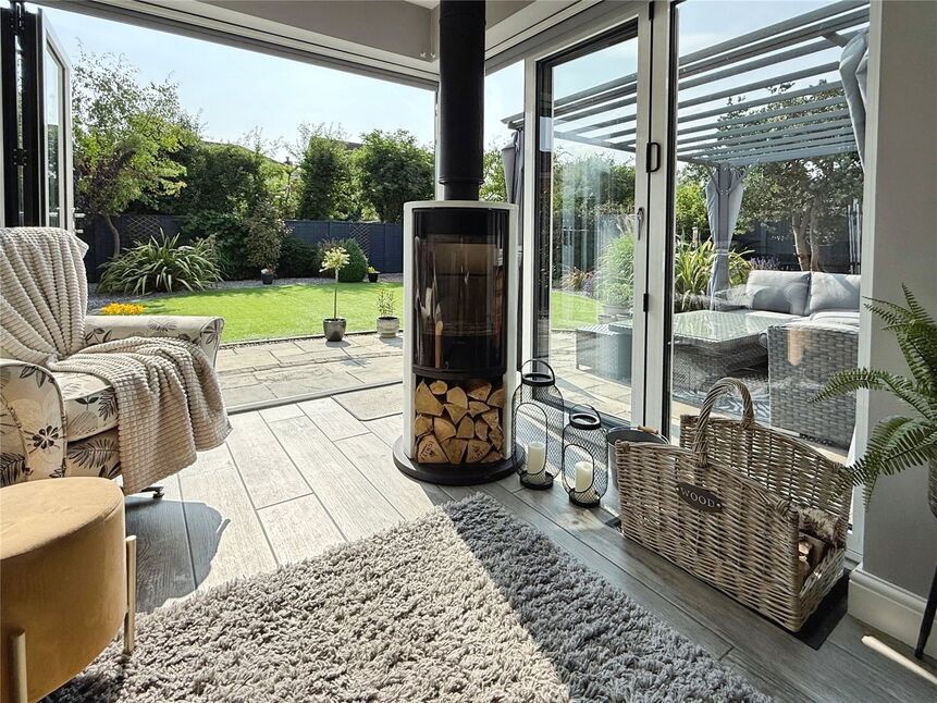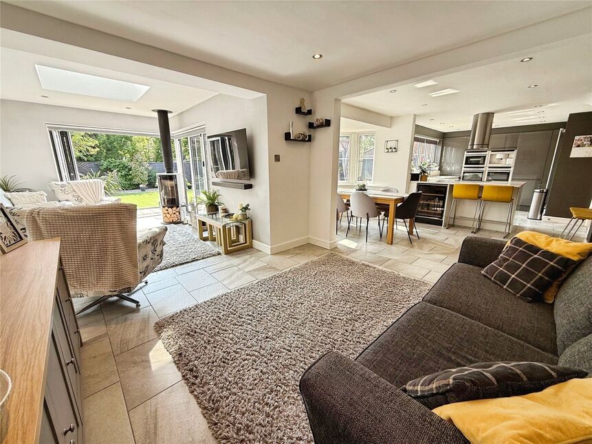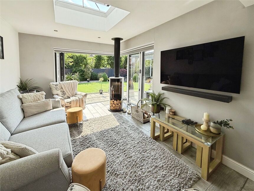 Having skylight window, bi-folding doors to rear and side aspects, feature log burning stove, fashion radiator.