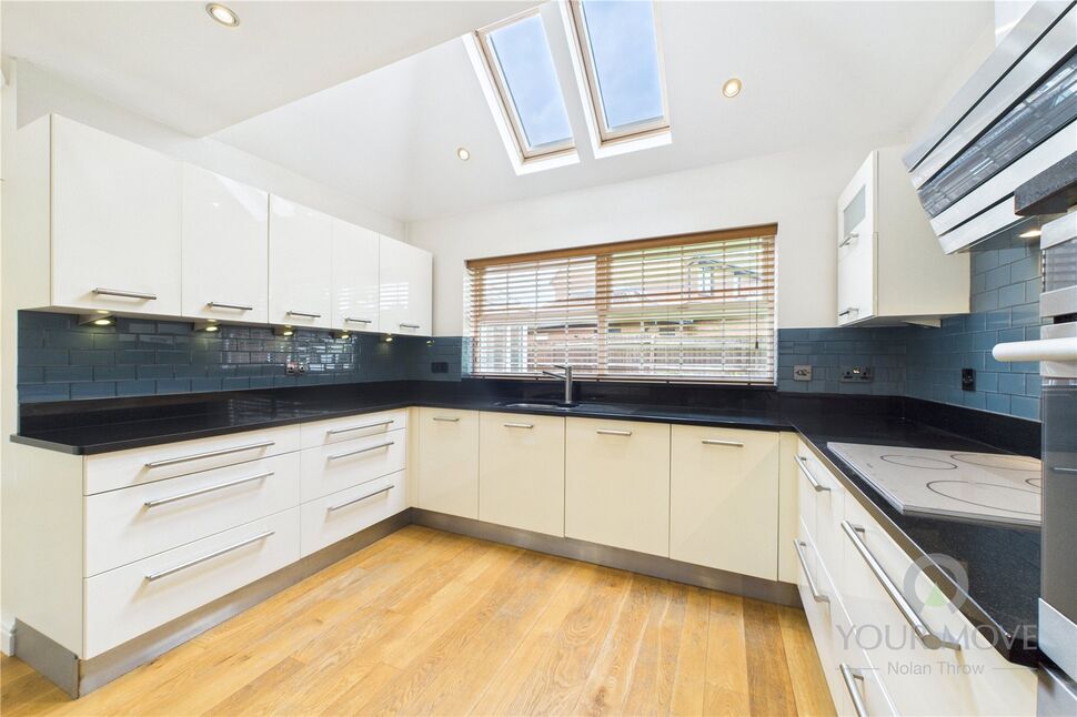 The kitchen is the heart of this home — sleek, stylish and full of light thanks to its rear-facing windows and rooflights. There's plenty of space for meal prep, storage and modern appliances, all wrapped in a contemporary design.