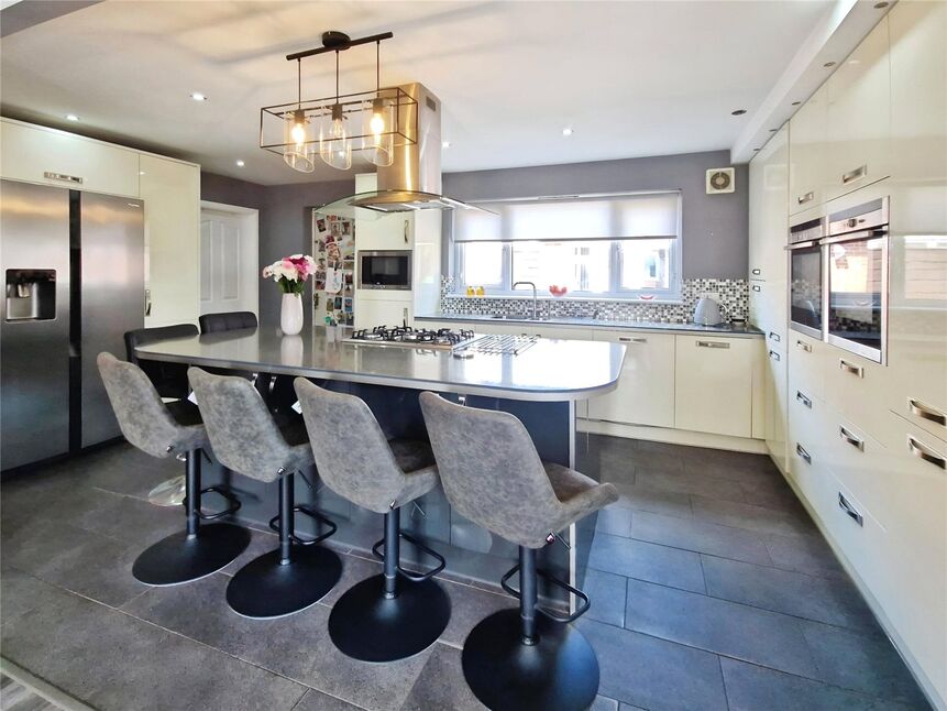 The accommodation is spread over three floors, starting with a vast entrance hall, fantastic size lounge running the full length of the property, downstairs WC, study and the incredible, modern fitted kitchen diner with integrated appliances, island unit which opens into an additional living room. There is a separate utility room from the kitchen. To the first floor are four spacious double bedrooms, three of which have fitted wardrobes, a beautiful ensuite bathroom to the main bedroom fitted with a four piece suite, and a contemporary family bathroom. To the third floor is an incredible size bedroom running the full width of the property, which could comfortably be split into two bedrooms or an additional bathroom, with additional loft storage in the eaves.
