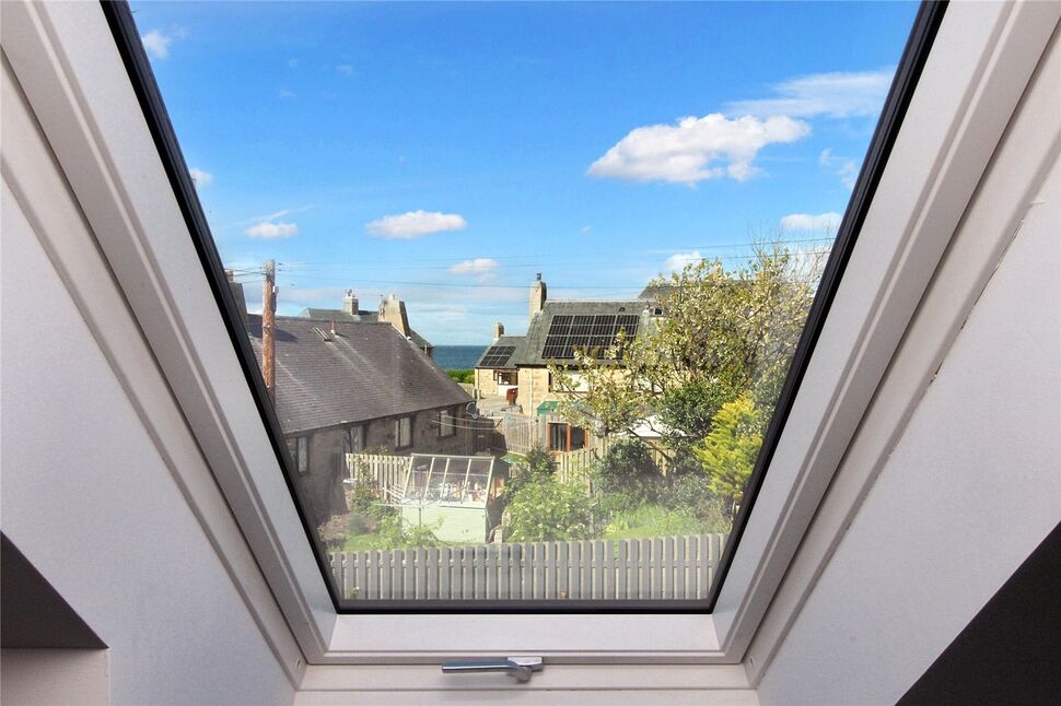 The second upstairs bedroom is a generous sized room featuring built-in wardrobes, two large front facing Velux windows and a partial sea view.
