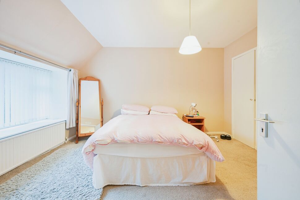 Built-in triple wardrobe with mirrored sliding doors. Shower cubicle and wash hand basin. Window to front overlooking garden. Walk-in storage cupboard.