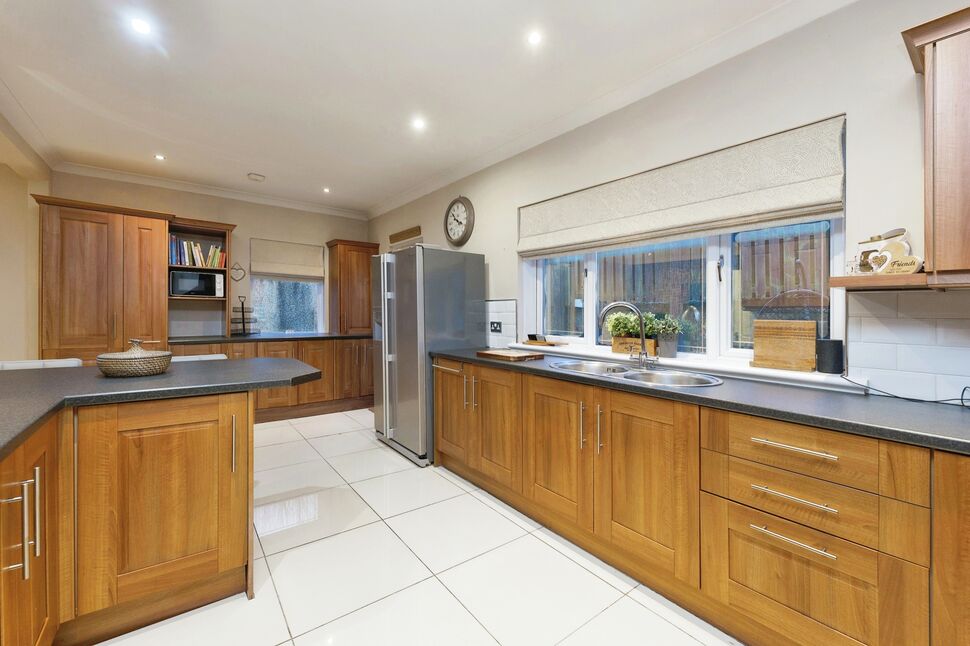 Kitchen is large and open plan offering modern living with dining and breakfast area.