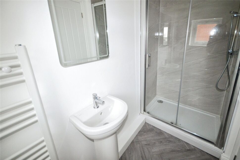 There is a double shower enclosure, pedestal sink and a low flush wc.