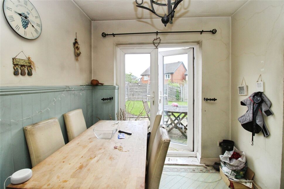 The home has an entrance porch which opens into the living room, there is a separate dining room which has patio doors to access the rear garden. The dining area is open plan with the fitted kitchen.