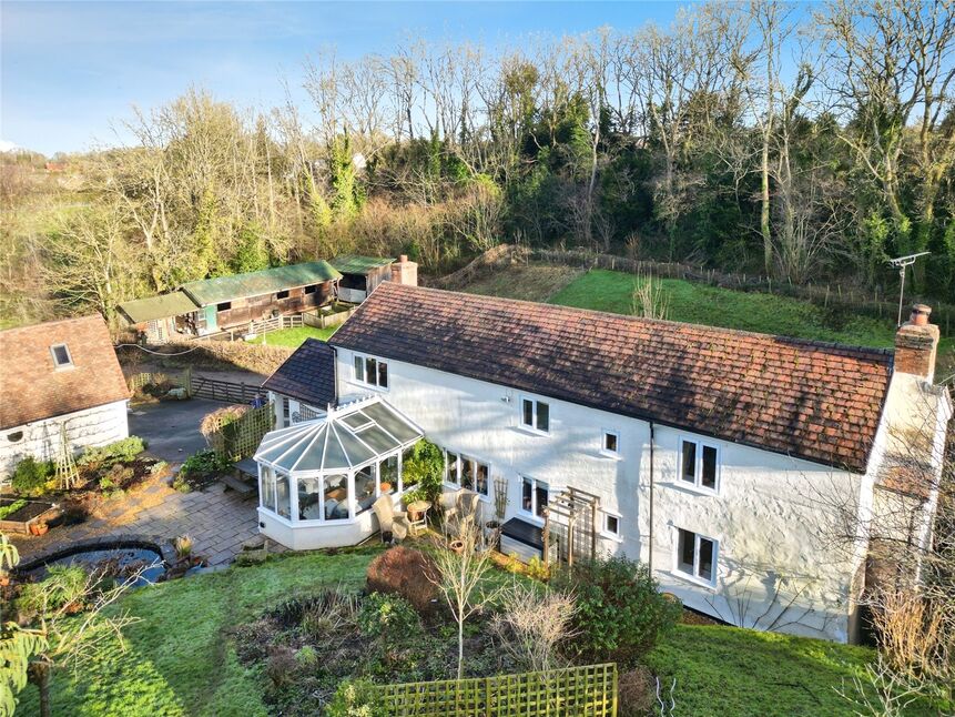 STUNNING EXTENDED CHARACTER COTTAGE with STABLING, OUTBUILDINGS, DOUBLE GARAGE & APPROX 2 ACRES PADDOCKS & GARDENS - Situated in a peaceful rural location with views over farmland & woods, this beautiful 3 bedroom cottage enjoys a wealth of features, including exposed beams, multi fuel burner, open plan dining kitchen and attractive gardens. In addition there are 3 stables, tack room, hay barn and a double garage with versatile home office over.