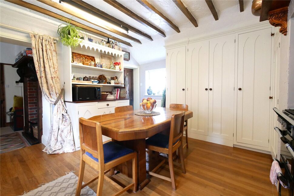 Equipped with a range of cream shaker-style wall and base units and wooden "Iroko" worktops. It includes a one-bowl ceramic sink with chrome hot and cold taps and has space and plumbing for a dishwasher and space for a fridge freezer. Three double-glazed window to the side and rear, ceiling light and a radiator.