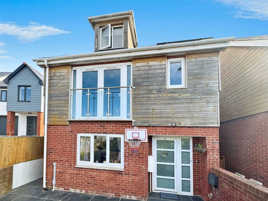 Guide Price £375,000 - £400,000. Offered with No Ongoing Chain. A very well presented and versatile modern detached family home built over 3 floors in circa 2017 enjoying views over fields to the Exe Estuary beyond. Accommodation comprises on the ground floor, reception hallway, 3 ground floor double bedrooms and a family bathroom with white suite. On the first floor there is a spacious open plan lounge/diner and kitchen. The Kitchen area has matching built in base and eye level cupboards with some integrated appliances. The lounge area has a Juliet balcony enjoying a view over fields to the Exe Estuary. Also on the first floor there is a further room which is currently used as a large walk in wardrobe but could be a study or 5th single bedroom. On the second floor there is a large master bedroom with en-suite shower room and good sized eaves storage cupboard with flooring. Outside there is a lawned front garden whilst to the rear there is an enclosed garden. The property also has a garage and an allocated parking space. Additional benefits include double glazing, gas central heating and solar panels.