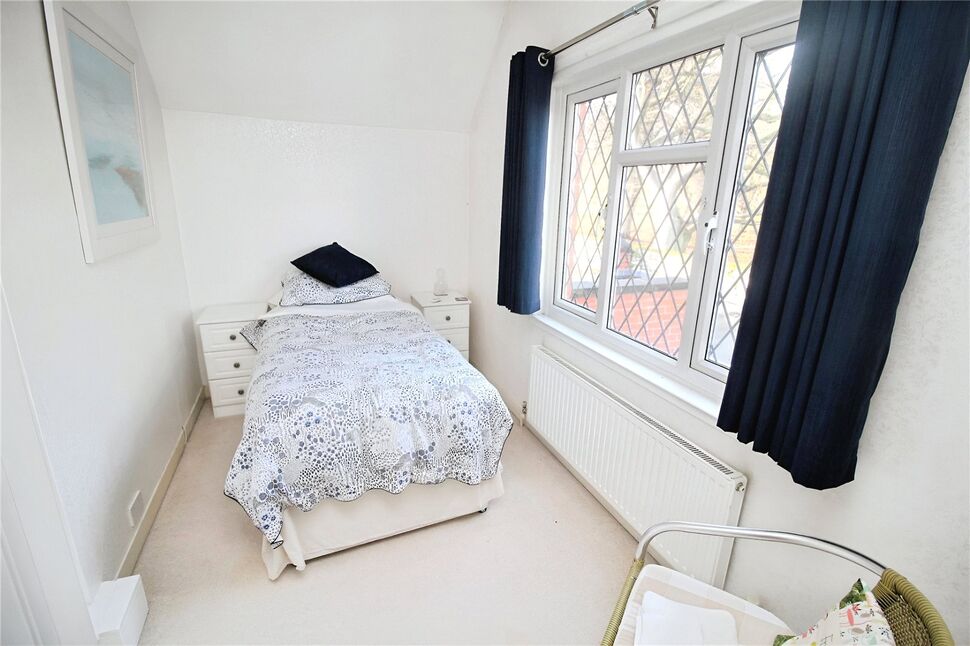 Spacious second bedroom, having two double glazed windows to the front and side elevations, coving to the ceiling and a central heating radiator.