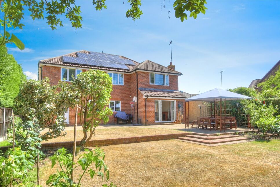 A superb DETACHED FAMILY HOME with FIVE Double Bedrooms, THREE Reception Rooms, & Three Bathrooms located in the Heart of the ever-popular Wraysbury Village. Further benefits include a huge, gated driveway with parking for several vehicles, stunning staircase to the Entrance Hallway & Landing, Double Garage with EV charging, Solar Panelling, Utility Room, Downstairs Cloakroom, and Stunning mature rear garden with Patio and Lawned areas. If required, there is potential for extending the property subject to Planning Permission.