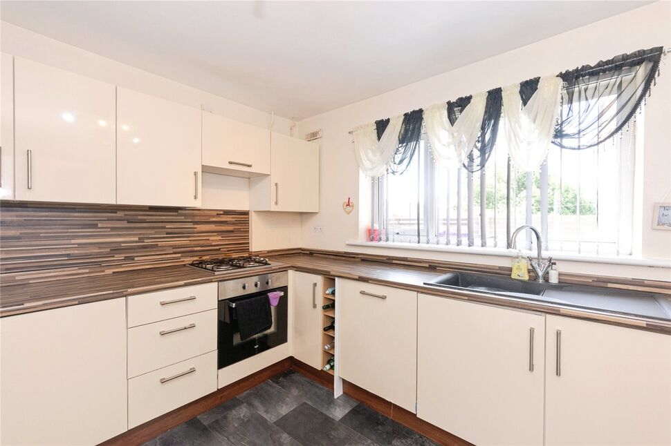 Having a range of modern fitted units, with integrated electric oven, gas hob, dishwasher and fridge. There is a double glazed window, which overlooks the rear garden.