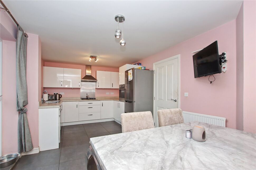 The full layout comprises: Entrance with stairs to the first floor, lounge to front with understairs cupboard, and a spacious dining kitchen to rear. The kitchen is fitted with an attractive range of high gloss base and wall cupboards with contrasting work surfaces, built in oven, hob, and an integrated sink unit. Utility room to side and a ground floor WC.To the first floor there are four double bedrooms, including a master bedroom with en-suite shower room. Landing with storage cupboard. The family bathroom is fitted with a modern white three piece suite.