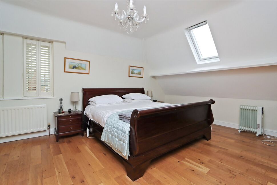 To the first floor there are two double bedrooms, both with Velux windows. The sizeable main bedroom has a spacious layout and an en suite shower room that includes a shower cubicle with mains-fed shower unit, wash hand basin and W.C.; the second double bedroom with fitted Hammonds wardrobes.