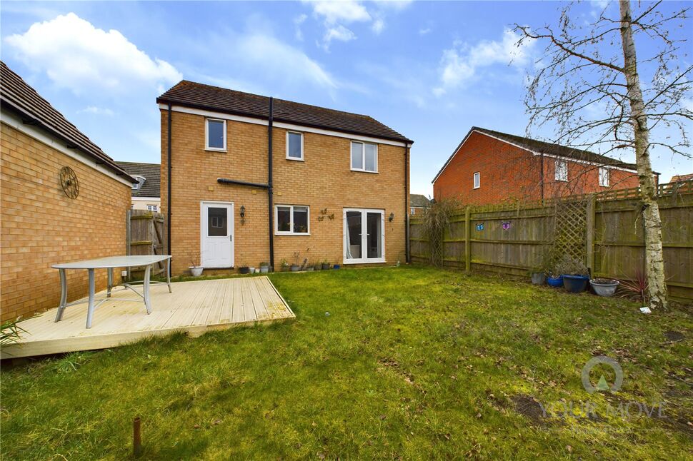 Outside there is a driveway providing off-road parking and leading to the garage, which has an up and over door. The rear garden is enclosed and mainly laid to lawn with a decked area and a silver birch tree.