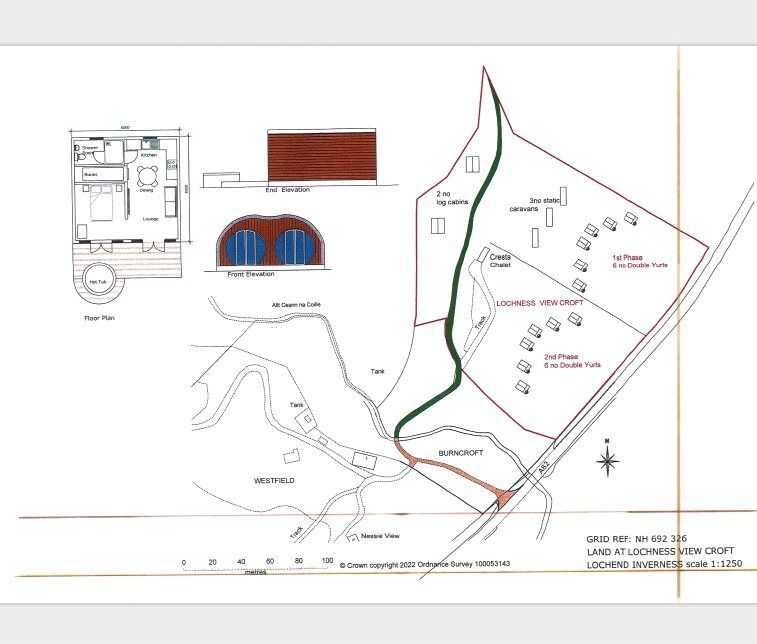 The chalet has been on site since 2016 (approx.), and the new owner would need to establish their own electric supply from the electric pole nearby and a septic tank is also needed. Mains water already runs through the croft. At present, year-round residential use has not been granted, so if the buyer intends to live in the chalet, this would need to be applied for.