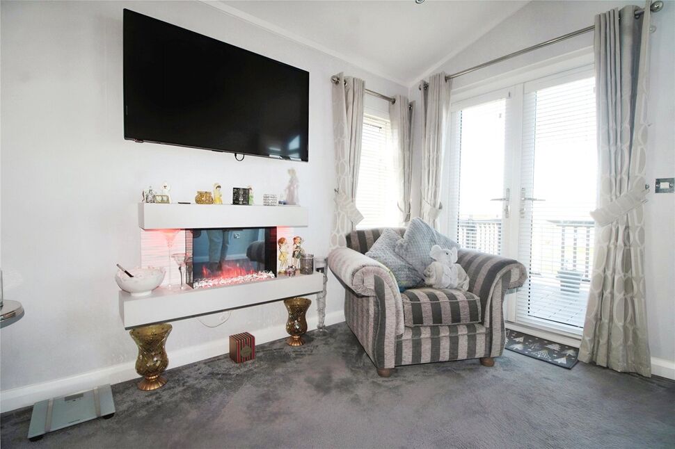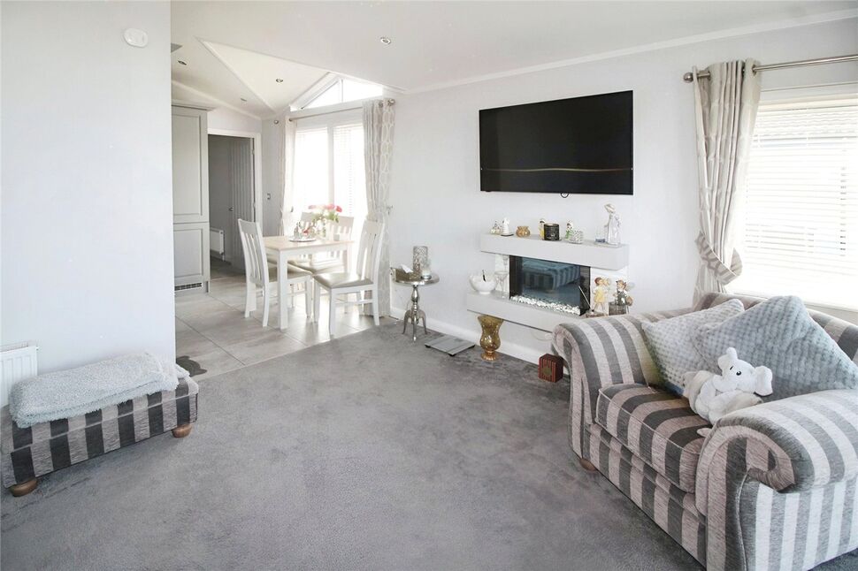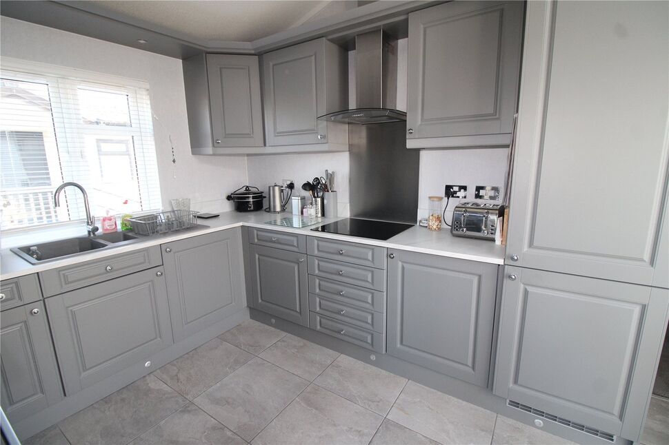 This park home offers two double bedrooms, both with built-in wardrobes and an abundance of natural light. The master bedroom is spacious and features additional comforts such as a double shower in the large bathroom.