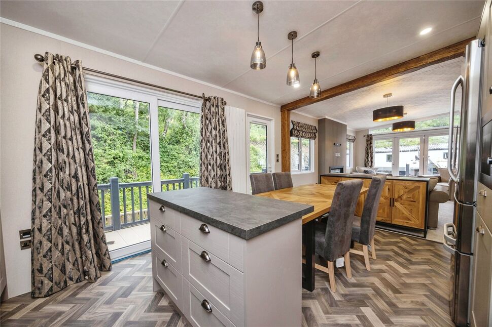 This luxury appointed home is undoubtedly designed to fully benefit from a stunning countryside setting right at the foot of the mountainside in a location of scenic beauty within a tranquil and peaceful environment. Completed to an exacting standard to fully ensure modern living finished with numerous embellishments giving all year comfortable living. Entrance door gives access to the open plan lounge/dining area which is flooded with light with widows to the front and side appreciating the tree lined views and French doors leading to the outside decking. An attractive fireplace serves as an attractive focal point. A further reading or sun lounge is also positioned of the lounge which gives additional loving space or area for peace and privacy for reading or just to enjoy the views. The kitchen is beautifully appointed and clever design to incorporate all appliances and adequate size including a focal island unit. Appliances include hob, oven, fridge/freezer, dishwasher and washer/dryer. At the rear of the property there are 2 double bedrooms, principal enjoying a an en suite shower room. Both are fitted with wardrobes giving plenty of storage and there is also an additional shower room/wc. Externally there are easily maintained gardens including a large deck to enjoy entertaining or just appreciating the views.