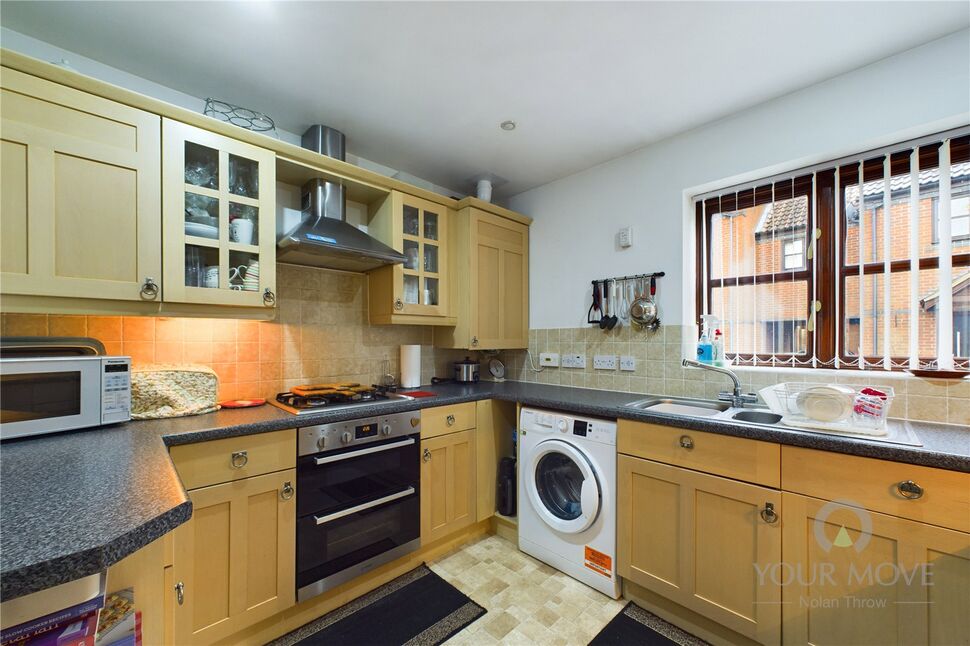 On entering the property via the enclosed porch, you are greeted by a spacious hallway leading into the living/dining area, as well as access to all areas of the property. The L shaped living space contains a large bay window and double doors to the garden and access to a well fitted kitchen. The kitchen contains a good range of wall and base mounted units, integrated oven and gas hob and plenty of space for appliances.