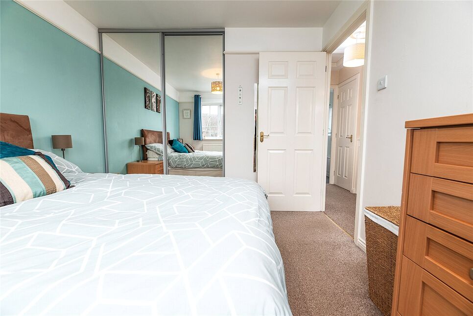 This double bedroom has a rear facing double glazed window, a centrally heated radiator and double fitted wardrobe with sliding mirrored doors.