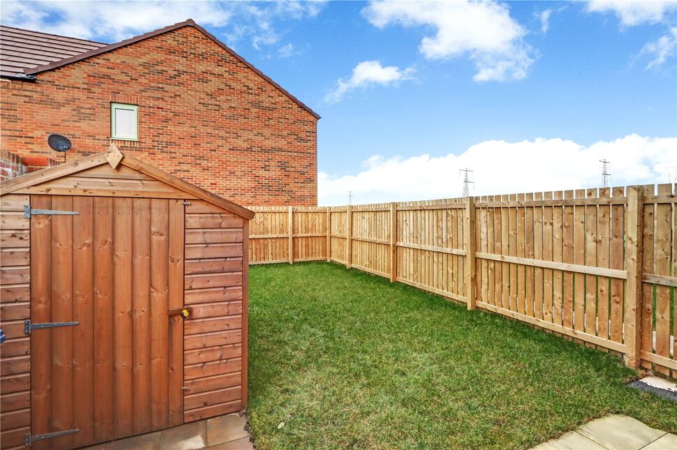 Outside there is a small strip of front garden in front of the two brick bloc parking spaces one of which has an electric car point. The rear gardens are enclosed and include lawn and patio.