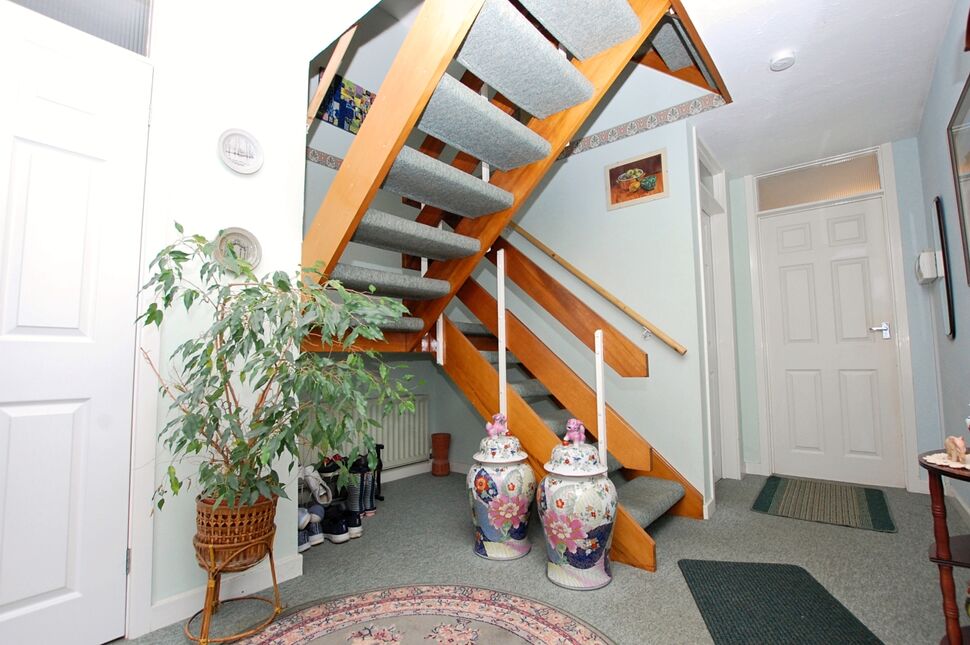 Dog-leg staircase rising to the second floor and a door to the sitting room.
