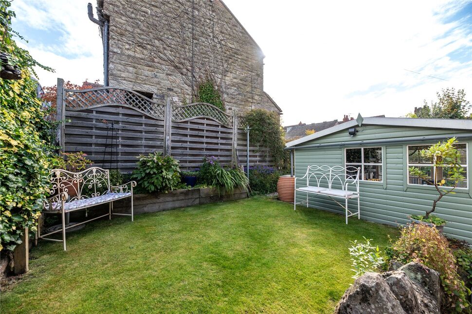 The property boasts a fabulous block paved patio area, ideal for summer dining. The block paving also forms an access pathway to the front, where an additional seating area is found. Steps lead up to a raised lawn garden bordered by colourful, well stock flower beds. There is also a wooden workshop and driveway providing parking for one vehicle.