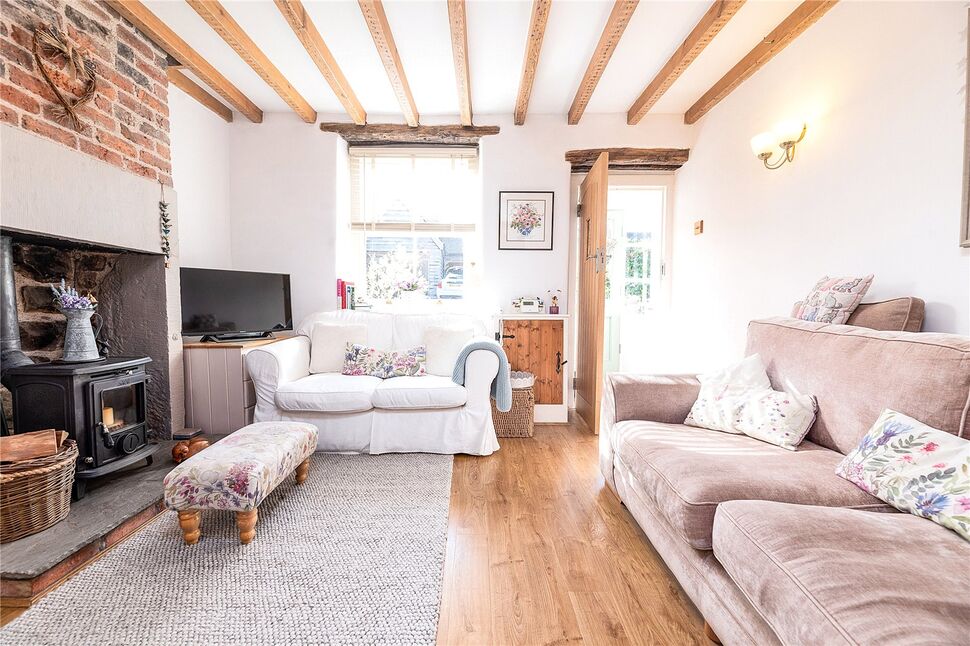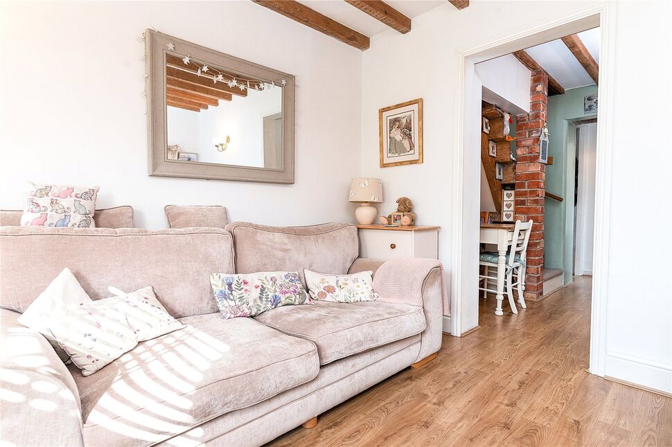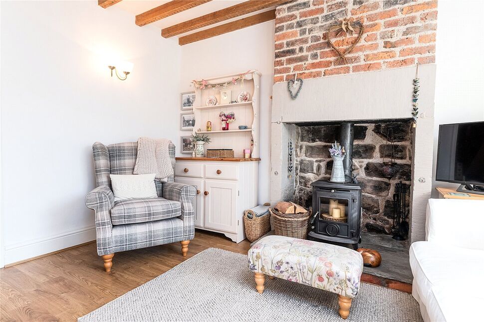 This charming and very cosy reception room boasts a handsome stone fireplace with inset log burner. Other features include exposed beams, wood effect flooring, radiator, TV point and a sash window to the front aspect.