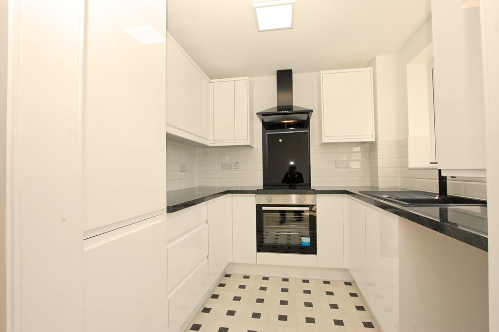 A newly fitted kitchen with High Gloss base and eye level wall units. Contrasting work surfaces with an inset composite sink unit. Inset glass hob, built in electric oven with an extractor canopy over. Plumbing for an automatic washing machine, integrated fridge/freezer and a concealed, wall mounted 'Worcester' gas combination boiler serving the heating system and domestic hot water. PVCu double glazed window to the rear.