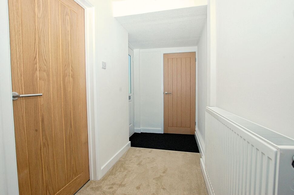 Composite, part double glazed entrance door, double radiator, stairs rising to the first floor landing, built in storage cupboard and a door to the sitting room/dining area.