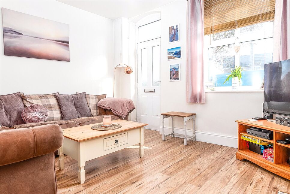 Light and spacious reception room, the focal of point of which is a multi fuel burner inset to a handsome fire surround. Other features include wood effect flooring, radiator, TV point, double glazed window to the front aspect and a double glazed front entrance door.