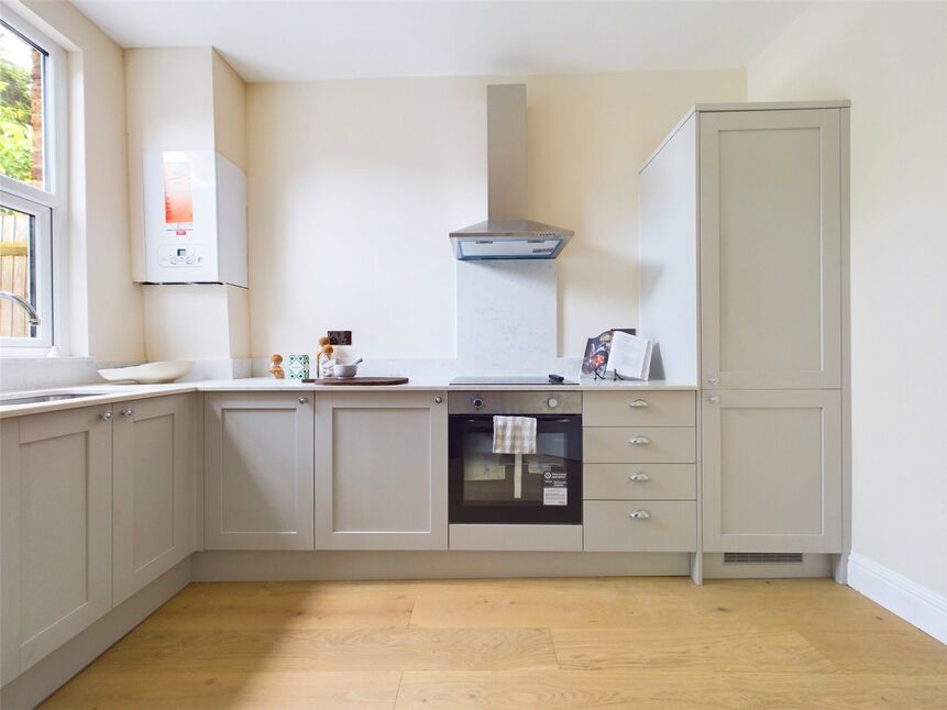 Kitchen and Bathroom: The fitted kitchen, located towards the rear, offers modern amenities and plenty of storage, leading seamlessly to the newly refurbished bathroom, combining style and functionality.