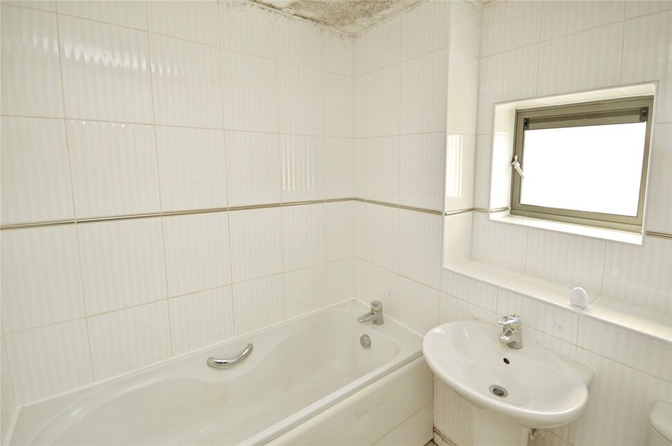 With obscured double-glazed window to front and fitted with a three-piece bathroom suite with tiled walls.