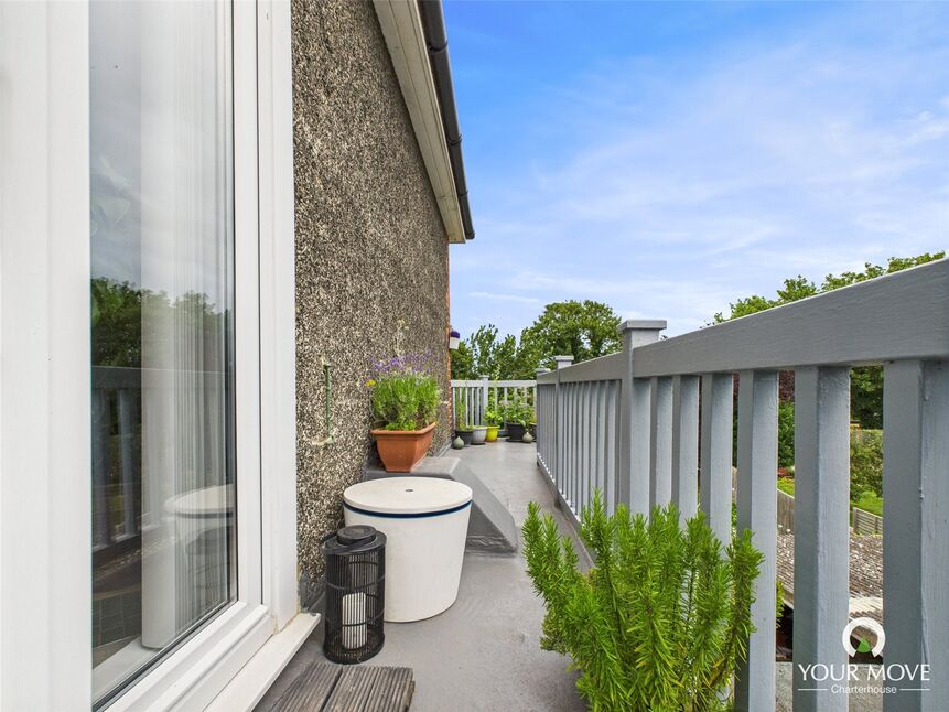 Balcony to the rear with frosted glass which has the sun from the early afternoon to evening.