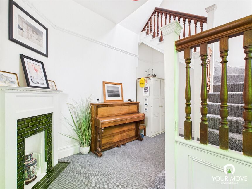Double glazed obscured windows to the side and front which were only replaced last year, balustrade carpeted staircase leading upto both apartments with under stair storage cupboard, tiled feature fireplace, picture rail, smoke alarm, further double glazed obscured windows to the front. This carpet was only replaced in 2024.
