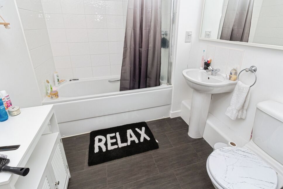 Featuring a white three piece suite to include, panel bath, low level w/c and wash hand basin