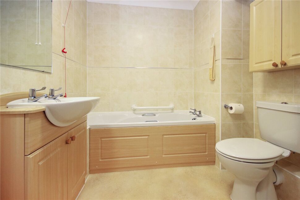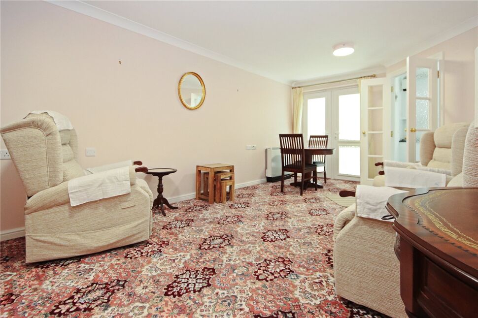 Occupying a peaceful position within this popular retirement development for the over 60s, this spacious and light-filled McCarthy & Stone apartment offers comfortable, well-planned accommodation. The layout includes an entrance hall leading to a generous lounge, where French doors open directly onto a Juliette balcony. The fitted kitchen is practical and well-appointed, while both bedrooms benefit from built-in wardrobes, providing excellent storage. The bathroom includes a WC, vanity unit, and a separate shower cubicle, along with a panelled bath.