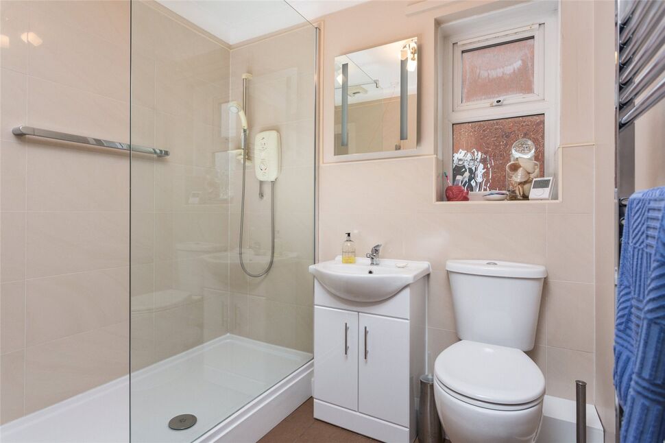 There are two bedrooms, with the principal bedroom having fitted wardrobes and an electric blind. There is a modern shower room/WC with a large walk-in shower and part tiled walls.
