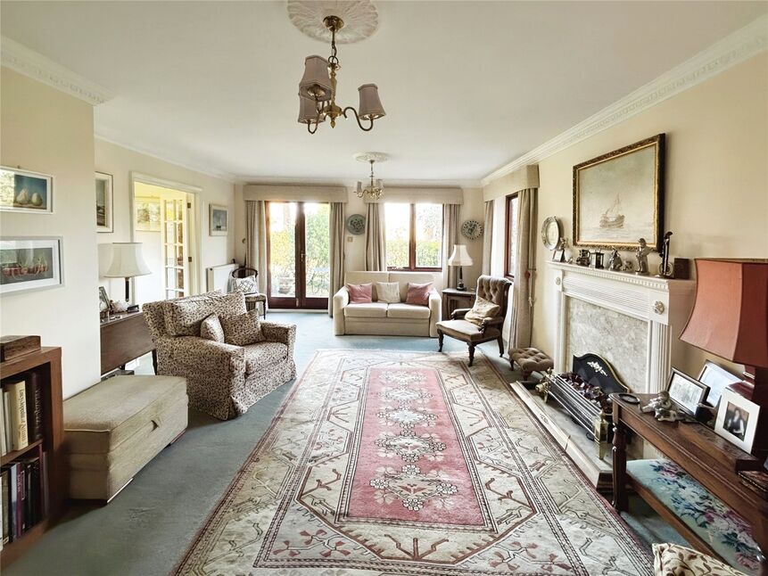 A light dual aspect room with central fireplace and double doors leading out to private courtyard style garden. TV and telephone point.