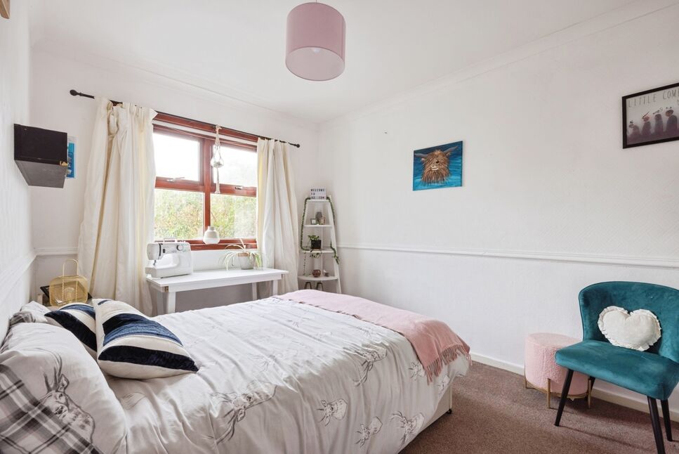 Bedroom 3: Double size with builtin storage. Comfortable and roomy; could suit a variety of uses depending on household needs.