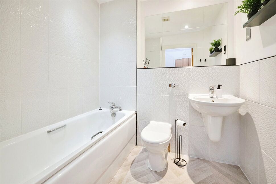 The flat comprises two spacious double bedrooms. The first bedroom is generously proportioned and comes with built-in wardrobes, offering ample storage. The second bedroom is also a double, offering comfortable living and sleeping quarters.