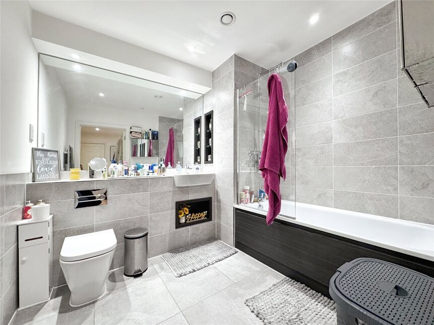 The flat features an alluring open-plan design that maximises the use of space, making the entire property appear more expansive. The reception room is comfortably spacious, providing an inviting area for relaxation and entertainment. It is adjacent to the fully fitted kitchen, which has been designed with functionality and modern aesthetics in mind. The balcony located off the open plan living area, providing you a private outside space to enjoy. The building also offers a communal roof top terrace, which could be used for when you have friend and family over to visit.