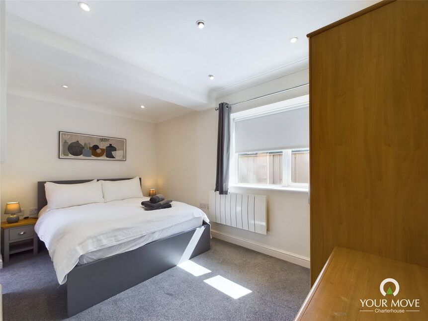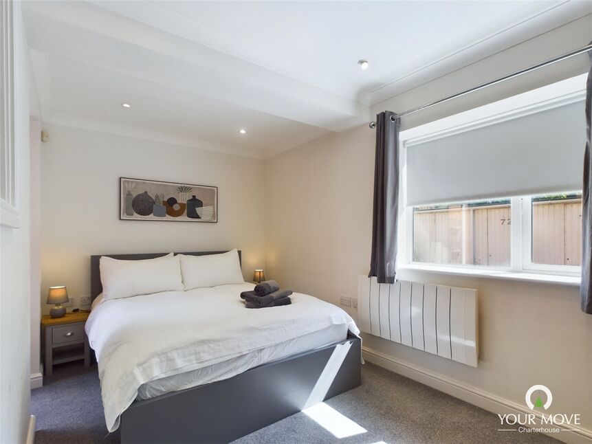 Double glazed window to the rear with fitted blind, carpeted, down lights, coving, radiator, telephone point, built in wardrobe and drawers, UPVC door to private decked courtyard/drying area.