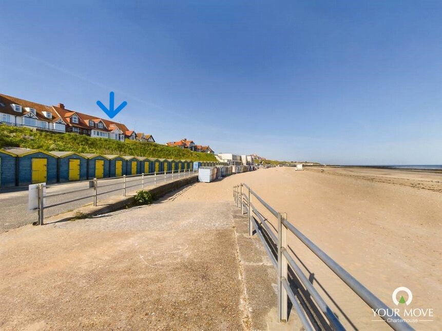 We are delighted to market this No chain, 2 double bedroom with ensuite, ground floor apartment with views across Westbrook Bay beach and allocated parking. This apartment is located directly on the sought after Royal Esplanade at Westbrook and just a stones throw from the beach which is in the top 50 of The Times UK' best beaches in a small block of just 3 apartments. This apartment would make an ideal home or holiday home and could be purchased with all of the furniture. It’s currently being used as a holiday let, marketed by Airbnb. It benefits from a good size lounge/diner with sea views, a fitted kitchen with integrated appliances, modern bathroom and 2 double bedrooms, the master having an ensuite, plus a door that opens to a private courtyard/drying area. It also benefits from a share of the freehold with long lease and a communal garden with private shed and allocated parking at the front. Its just a 10 minute walk to the Railway station and under a mile to the Old Town. Council Tax band is just A.