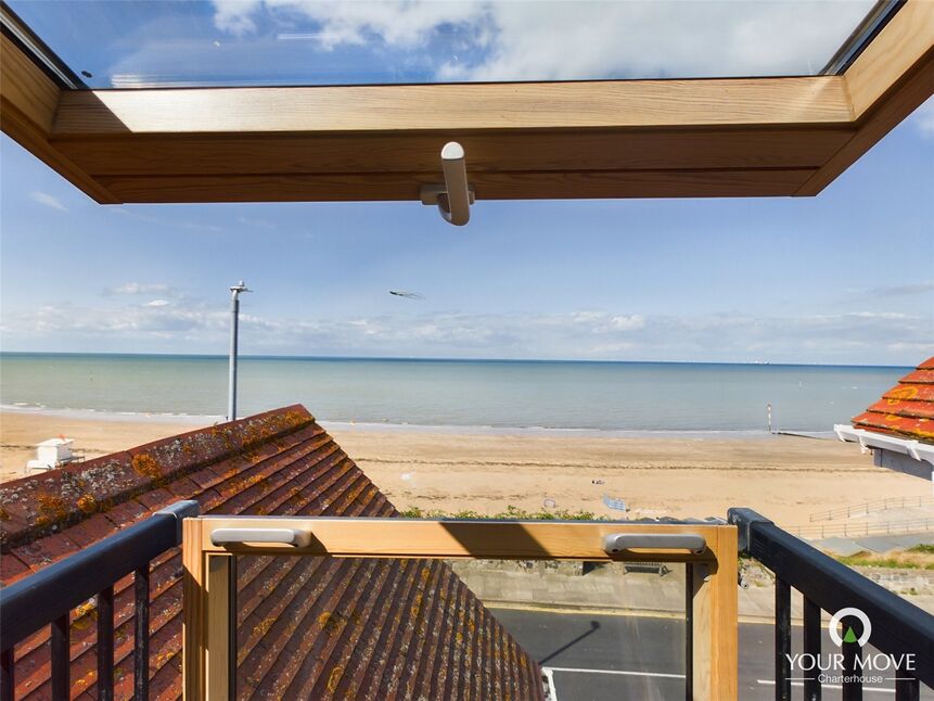SEA VIEWS - NO CHAIN - SHARE OF FREEHOLD We are delighted to market this No chain, double bedroom, 2nd floor apartment with fabulous views across Westbrook Bay beach. This apartment is located directly on the sought after Royal Esplanade at Westbrook and just a stones throw from the beach in a small block of just 3 apartments. This apartment would make an ideal home or holiday home and could be purchased with all of the furniture. It’s currently being used as a holiday let, marketed by Airbnb. It benefits from a good size open plan lounge/diner with a velux balcony window with sea views, a fitted kitchen with integrated appliances, modern bathroom and a double bedroom. It also benefits from a share of the freehold with long lease and a communal garden with private shed. Its just a 10 minute walk to the Railway station and under a mile to the Old Town. Council Tax band is just A.